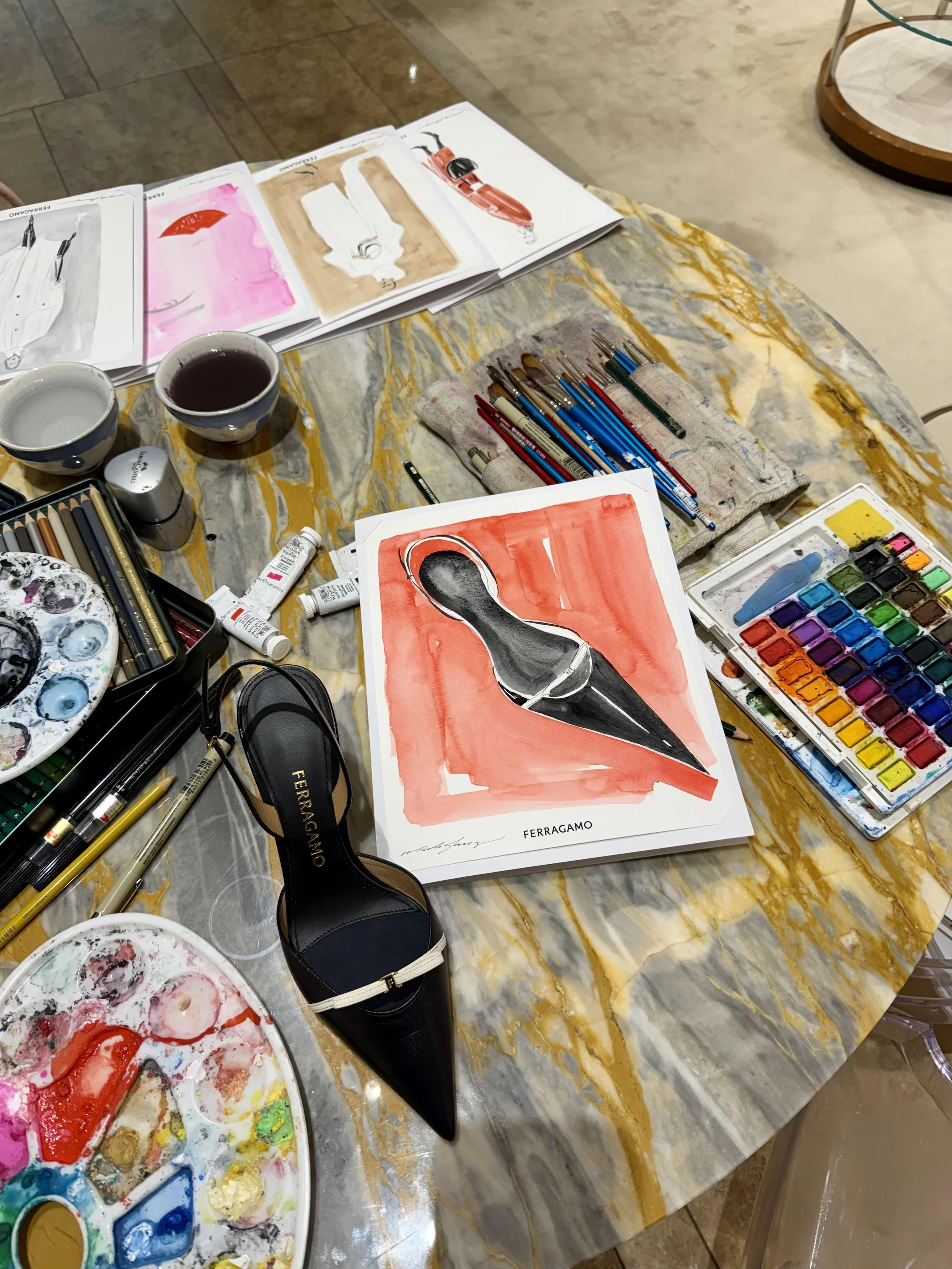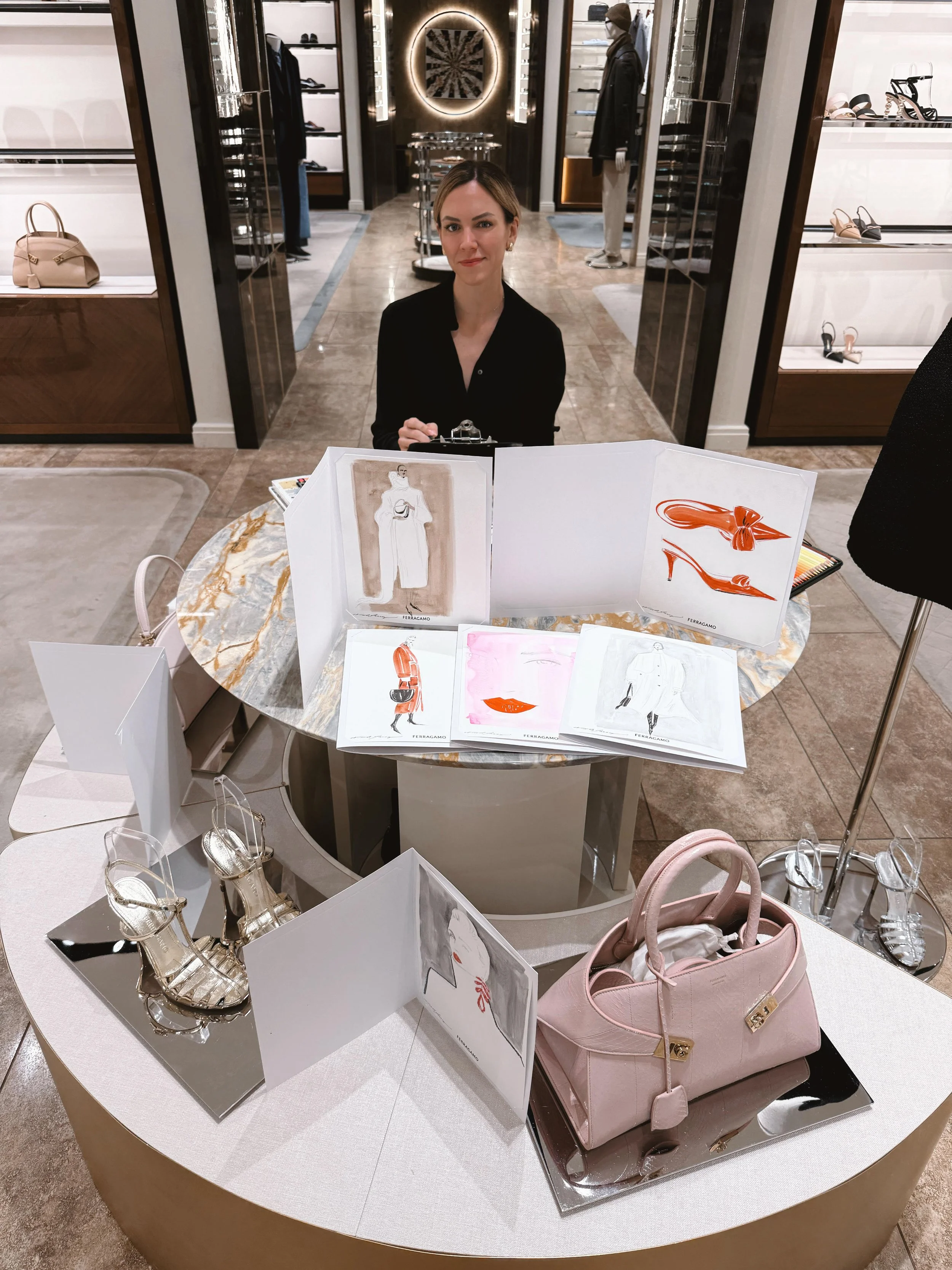 An in-store illustration experience for Ferragamo, capturing the brand’s signature elegance through live, hand-rendered works.